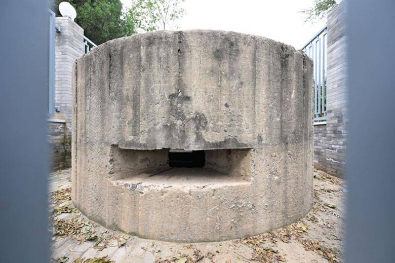 北京青年报记者在现场看到,这座碉堡是利用混凝土分层浇筑而成,外形浑然一体、敦厚坚固,相关部门为其重修墙圈,并对碉堡周围、墙圈内的泥土适度清理,让被埋多年的观察孔和出入口显露出来,3个观察孔分别面向东、西、南3个方向,均为外宽内窄的“八”字形,这让藏身在碉堡内的人,能获得较为开阔的视野。